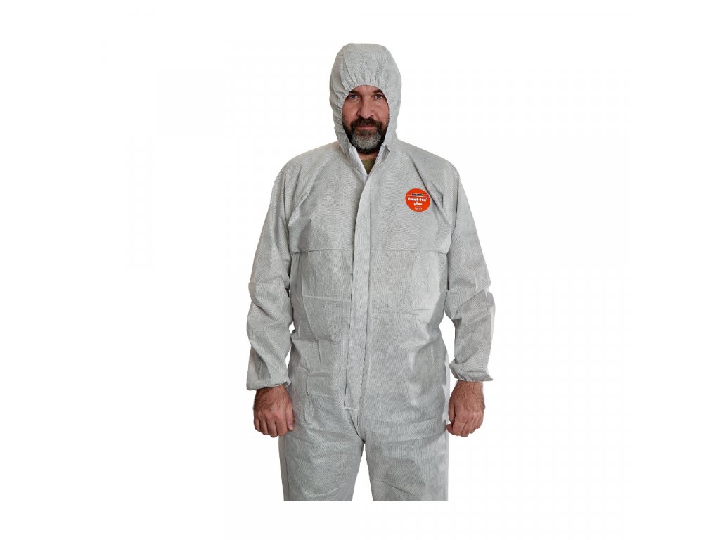 Kombinéza - overal PAINT-TEX plus - vodeodolná kombinéza s kapucňou, odolná proti chemikáliám, azbestu a prachu do veľkosti 1 mikrónu. Kombinéza má lepené švy, ochranu kategórie stupňa III. Je antistatická a čiastočne prievzdušná.